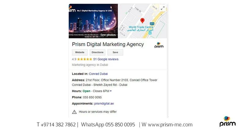 Location: Prism Digital Marketing Management LLC Latifa Tower, Office No. 604 - West Wing World Trade Center 1, Sheikh Zayed Road Dubai, UAE